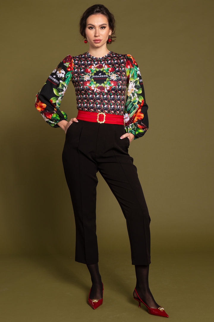 Choose from our favorite styles, now made special by pomegranate, flower and leaf motifs printed on a black background.