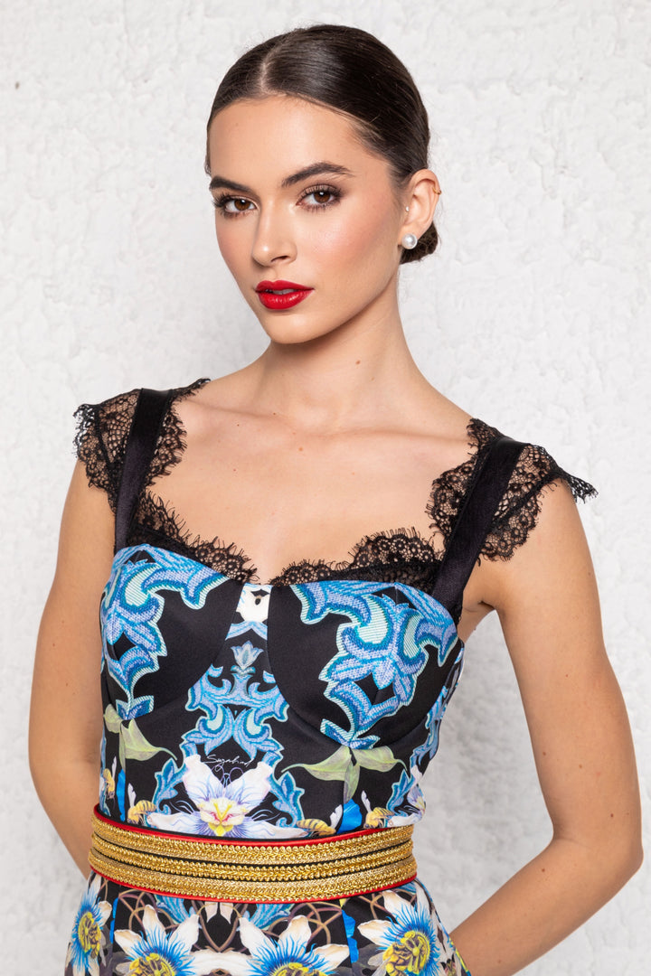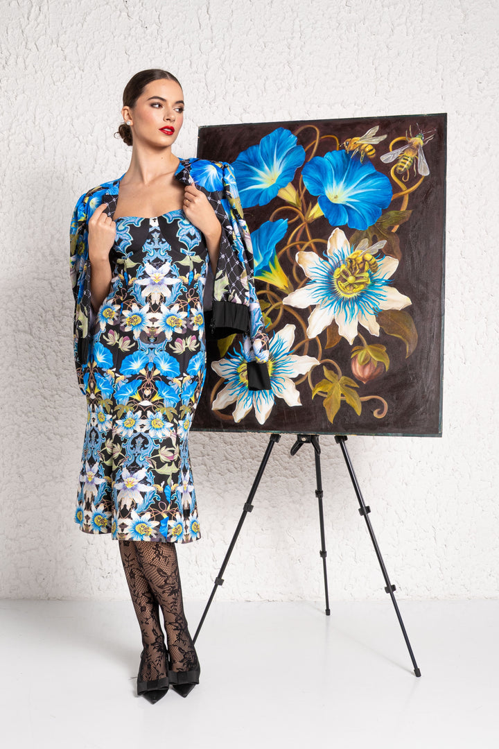 The romantic world of our collection is depicted in the watercolor technique “LA VIEN EN RONESIZEIts printed patterns of passion flowers make it elegant and special.