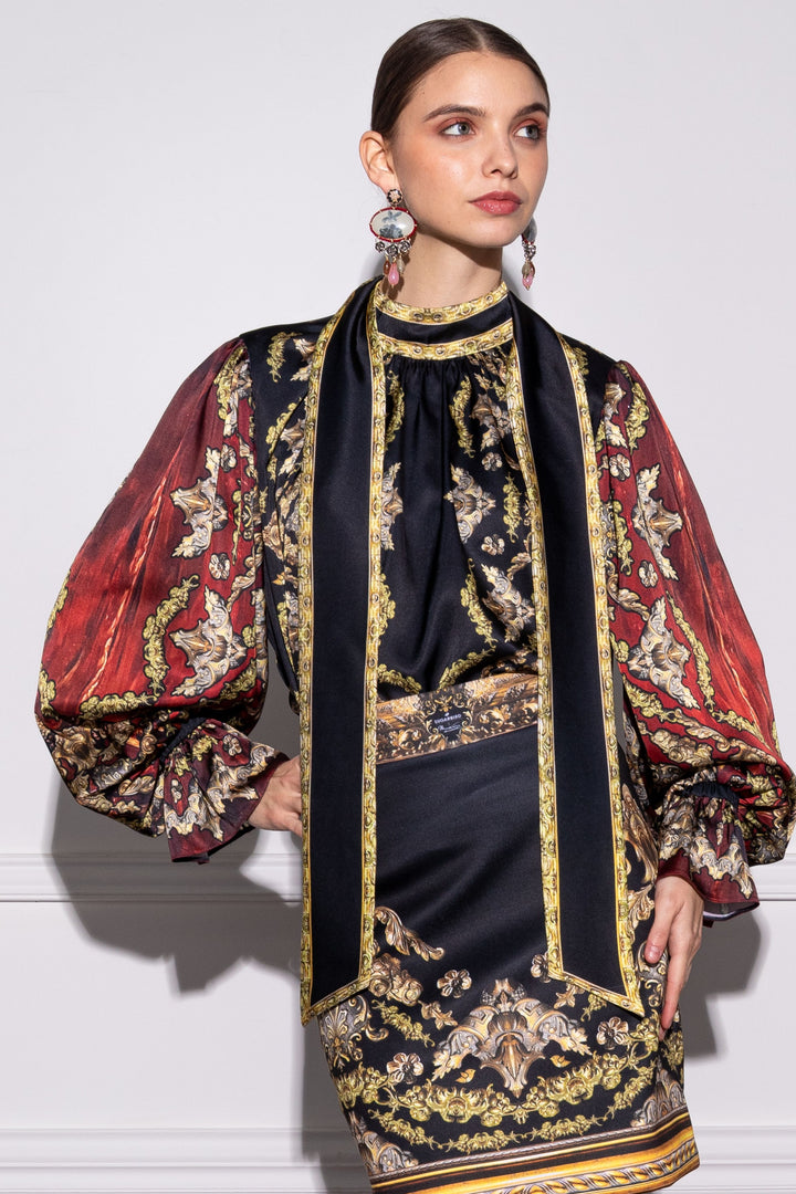 Csípő alá érő, hosszú ujjú, laza fazonú felső. Nyakát széles gallér szegi, mely a hátán egy hasíték felett gombokkal záródik. Ujja alján fodor, nyakában széles kötő díszíti.