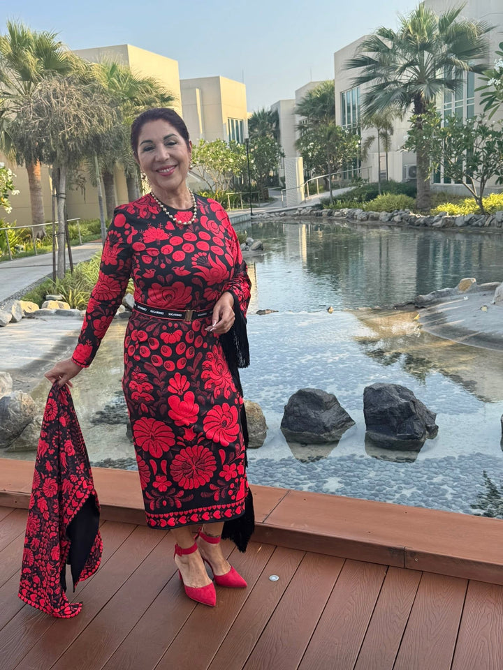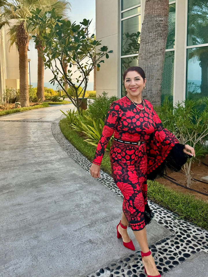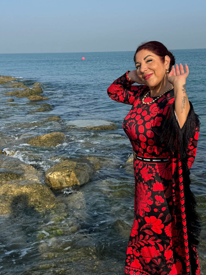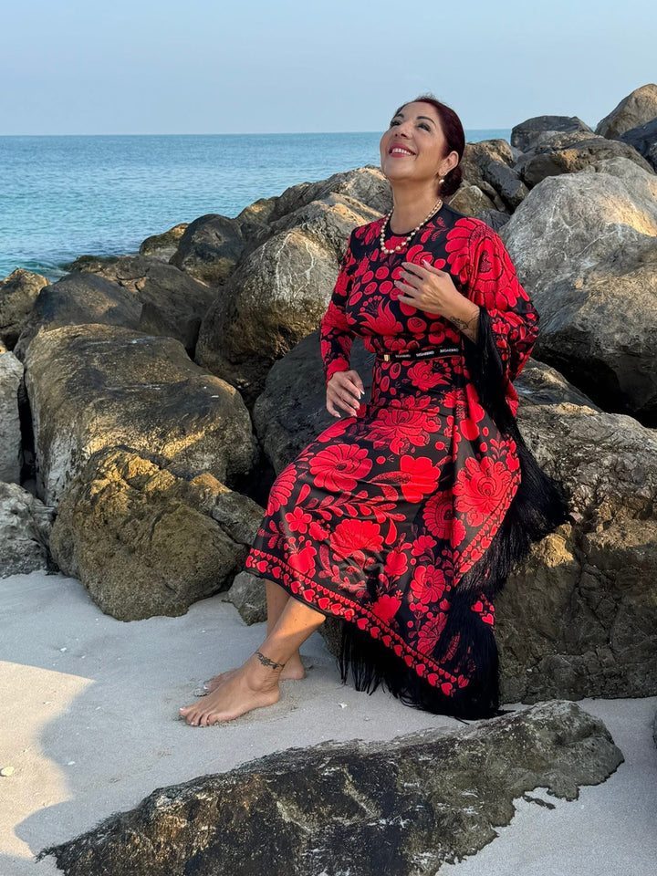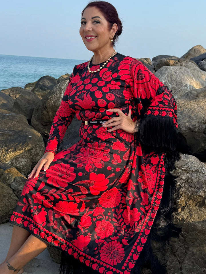 Choose from our exciting styles, the overall effect of which is made special by red MATYÓ flower and leaf motifs printed on a beige and black base.