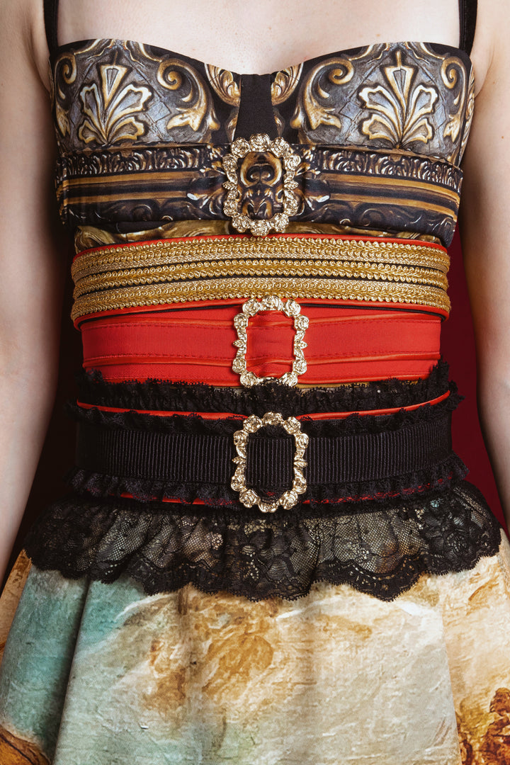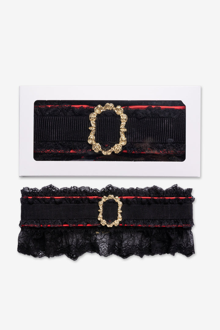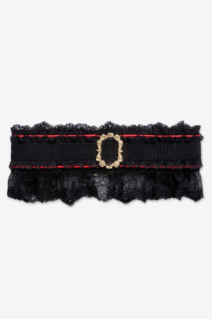 Széles gumis öv, amely fém övcsattal záródik. Szélein csipke kellék és paszpól, elején díszes fém kellék, a csat mellett piros színű, SUGARBIRD feliratú címke díszíti. A termék stílusosan kialakított, díszdobozos csomagolásban érkezik, mely nemcsak esztétikus, hanem ízléses is.