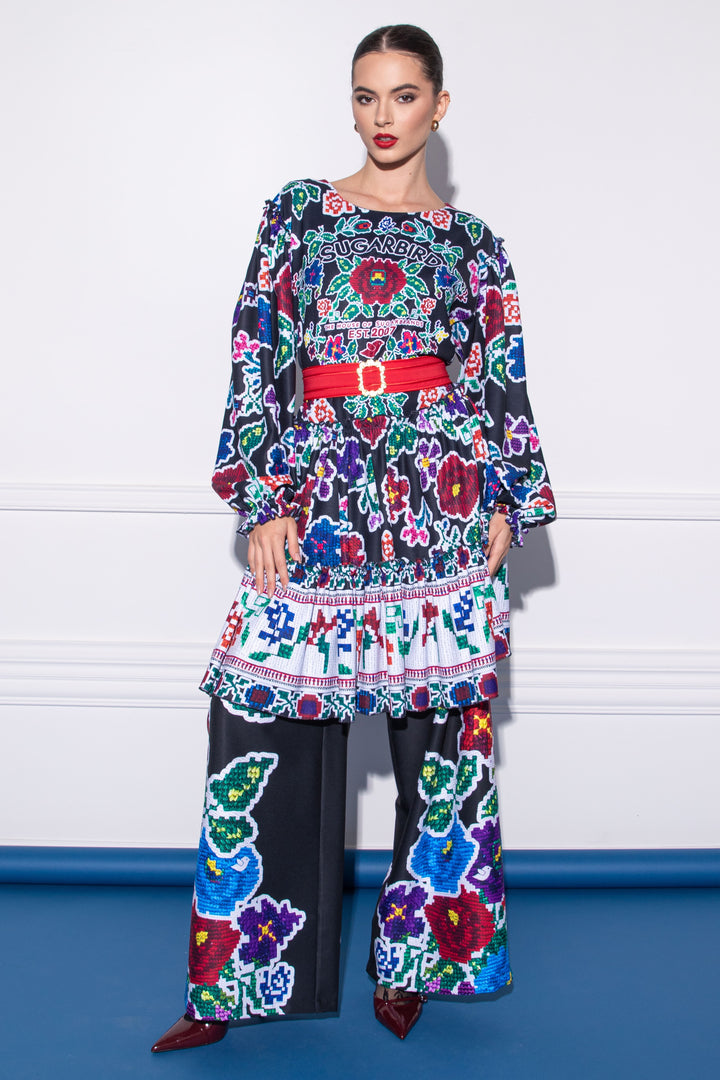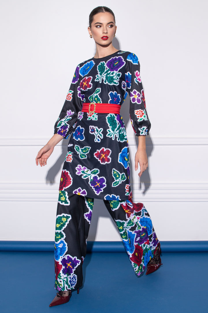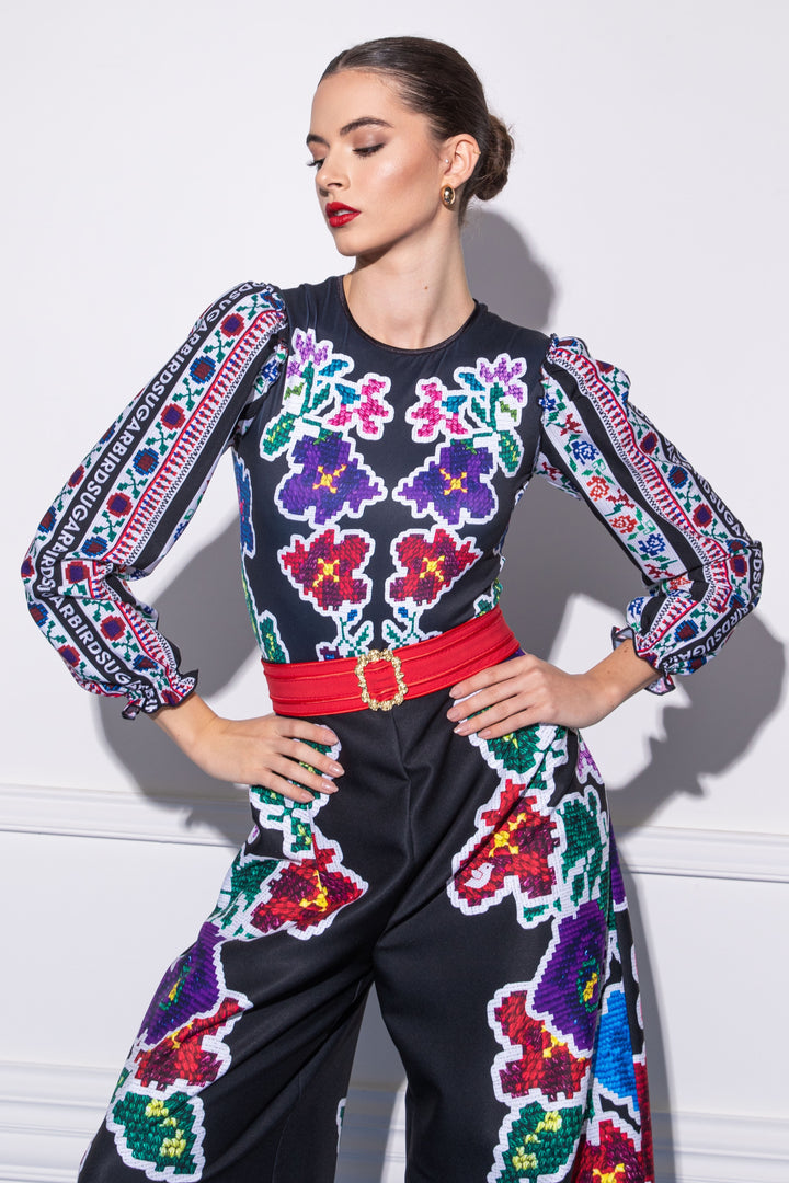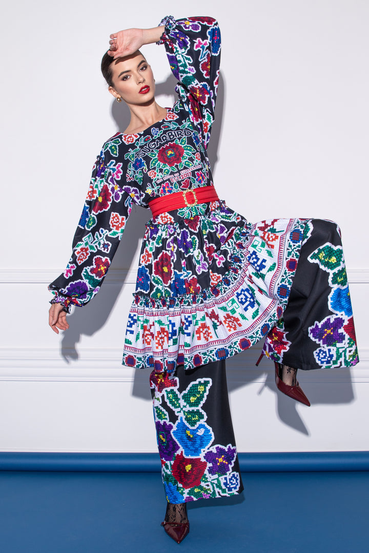 Discover new Csángó The special pieces of our collection, which feature prints of woven patterns and embroidery typical of the region on a black background. Our collection puts the colors and designs of the traditional Transylvanian folk costume in a modern guise.