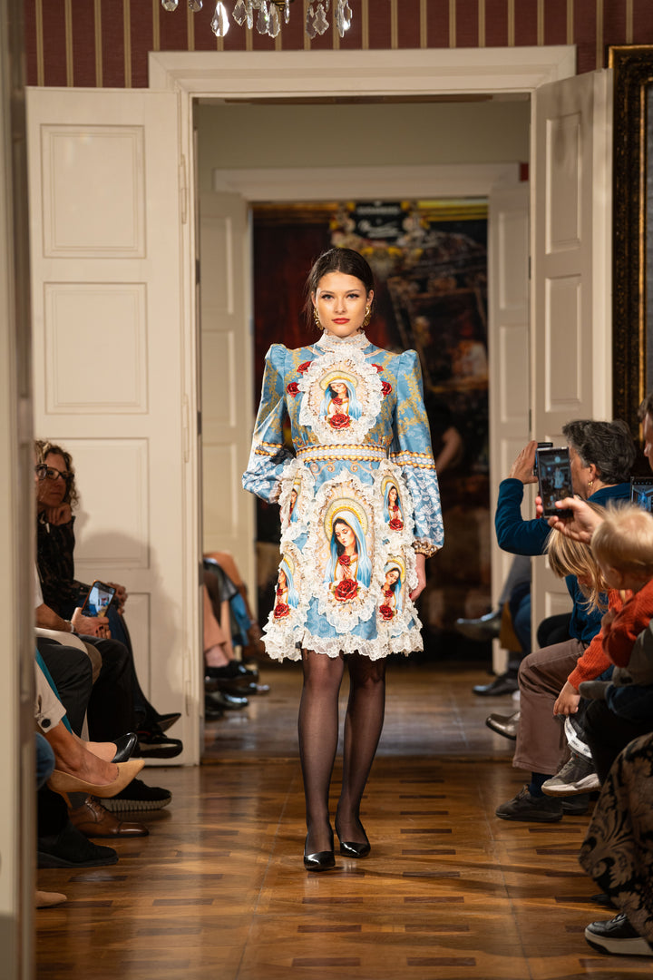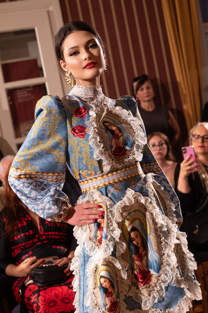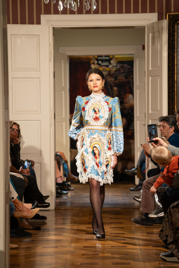 Discover the special pieces of our new Vive Maria collection, which feature the painted portrait of the Virgin Mary and its motifs as printed patterns.