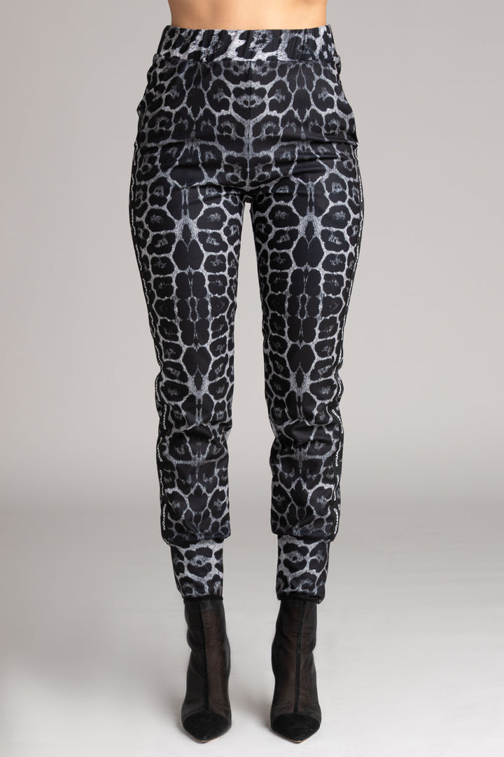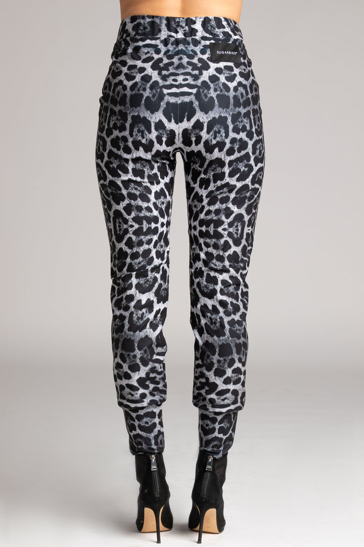 Long-leg, high-waisted, form-fitting trousers with pockets. Wide bottom, elasticated waist with folded waistband. Sides SUGARBIRD inscribed ribbon, decorated with a label on the back.