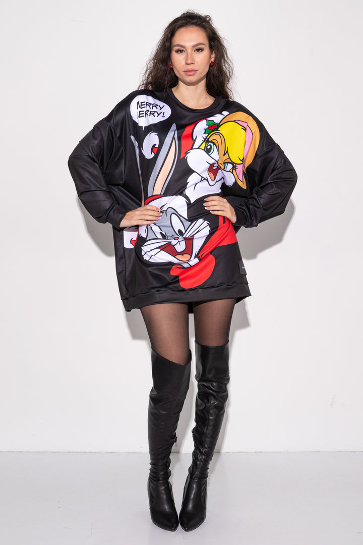 The popular styles of our Bugs Bunny collaboration are decorated with printed graphics of the iconic characters of the WARNER BROTHERS studio on a striped and black background.