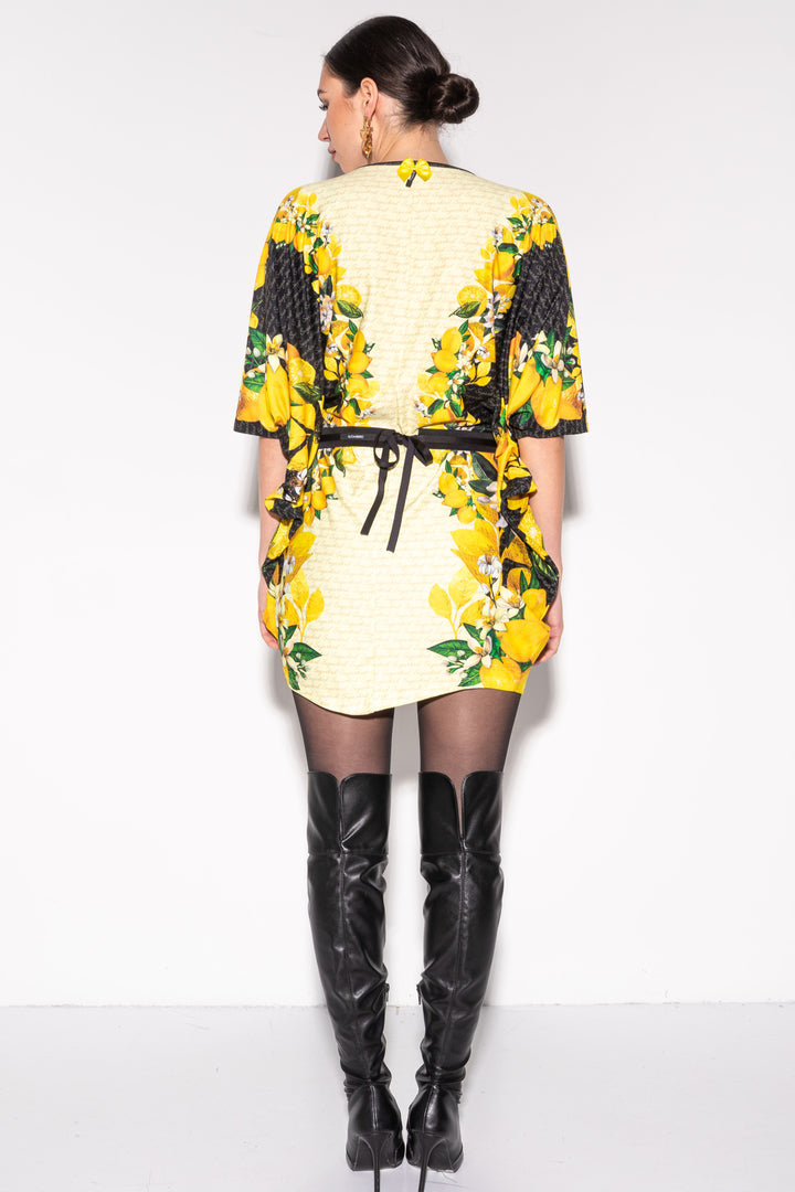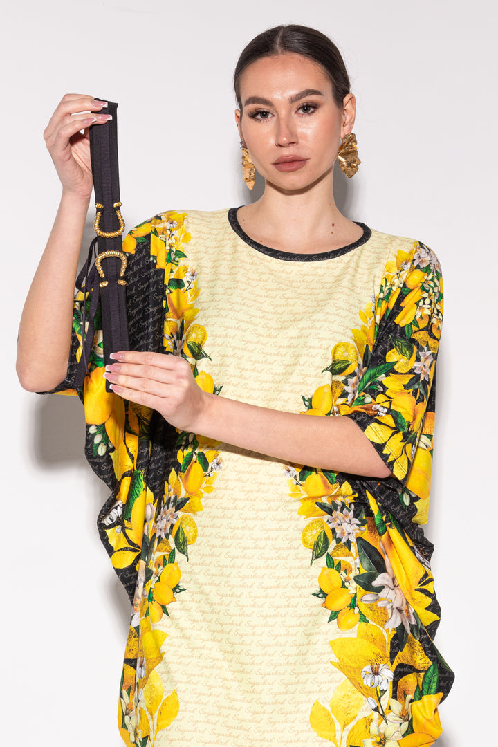 Update your wardrobe with our latest collection. Get your favorite style, with a pattern on a dark background. SUGARBIRD It is decorated with inscriptions and printed graphics of lemons, leaves and their flowers.