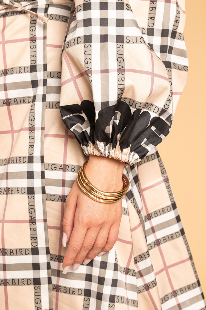 Discover the pieces of our new LONDON QUEEN collection, characterized by the timeless elegance of the beige checkered pattern and the iconic QUEEN and SUGARBIRD characterized by a combination of inscriptions.