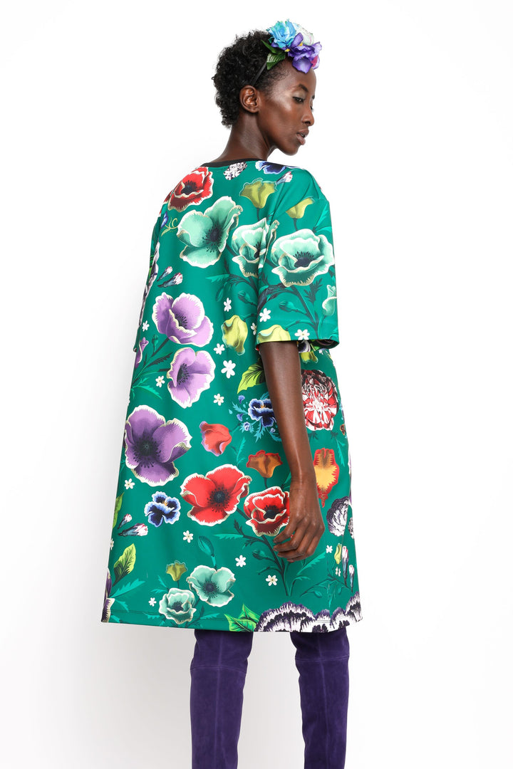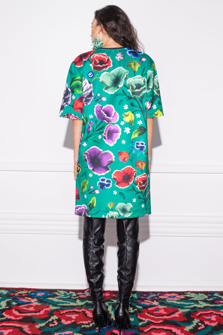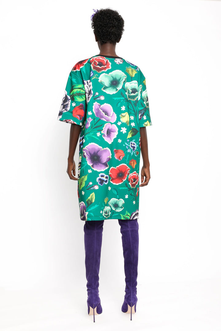 Short sleeves, loose and straight cut, above the knee length