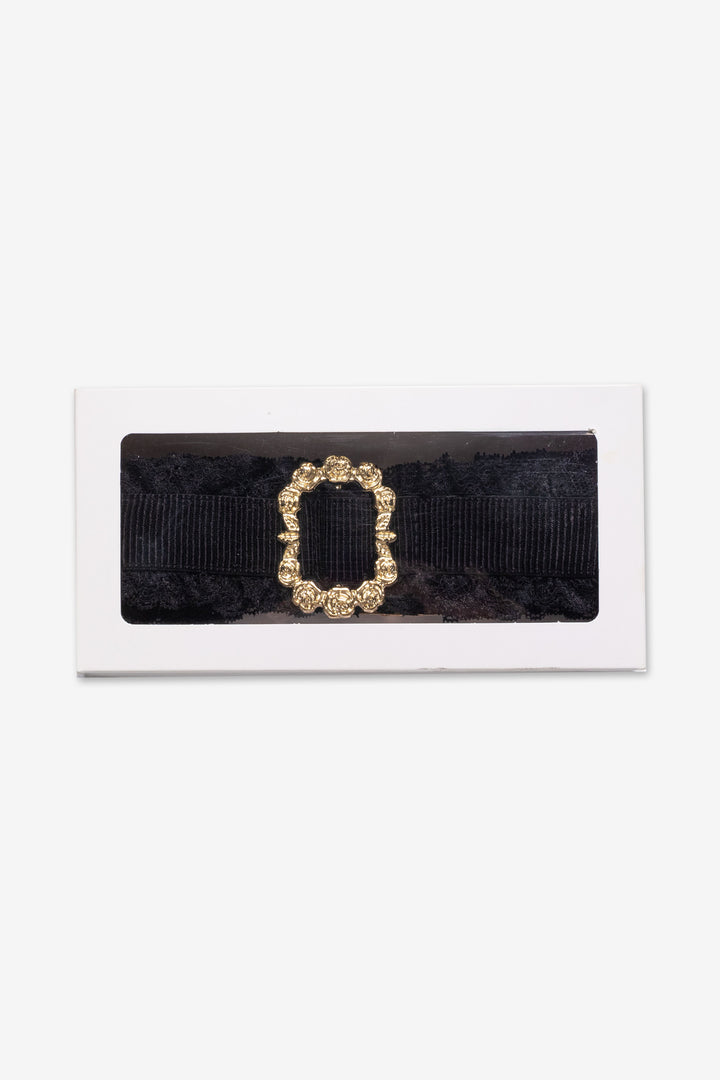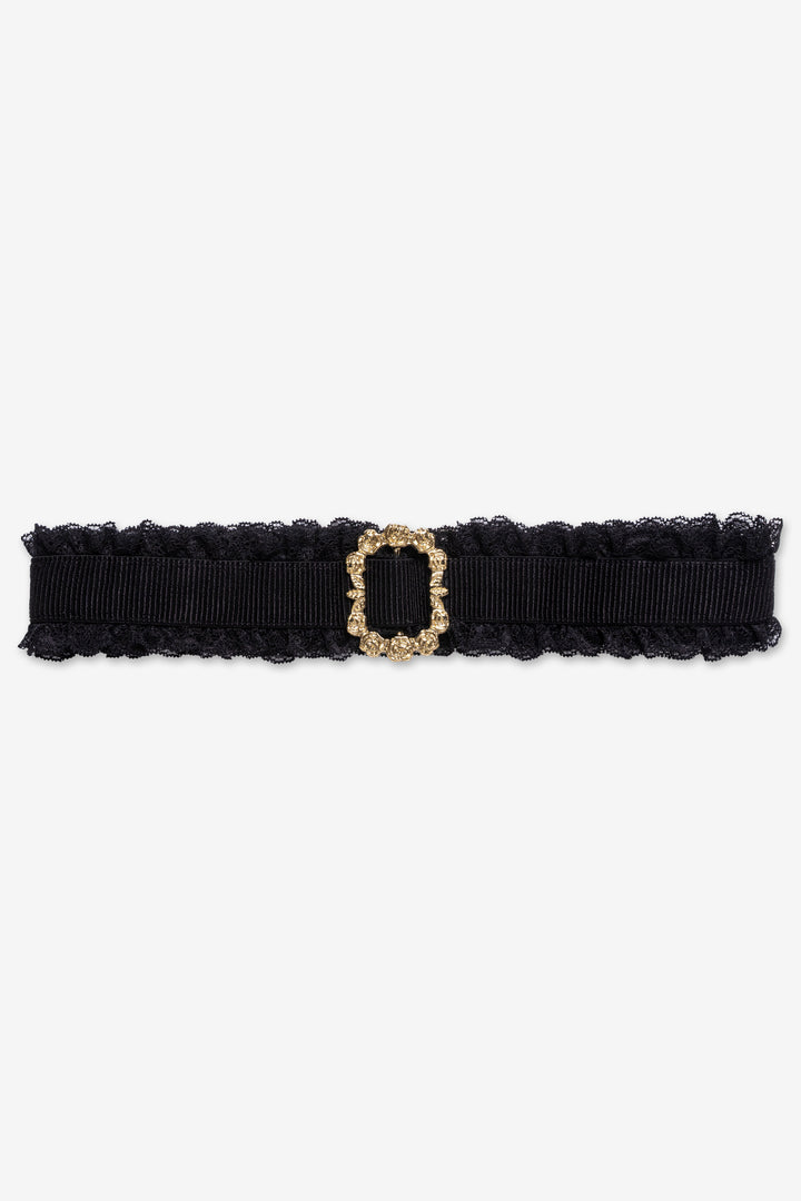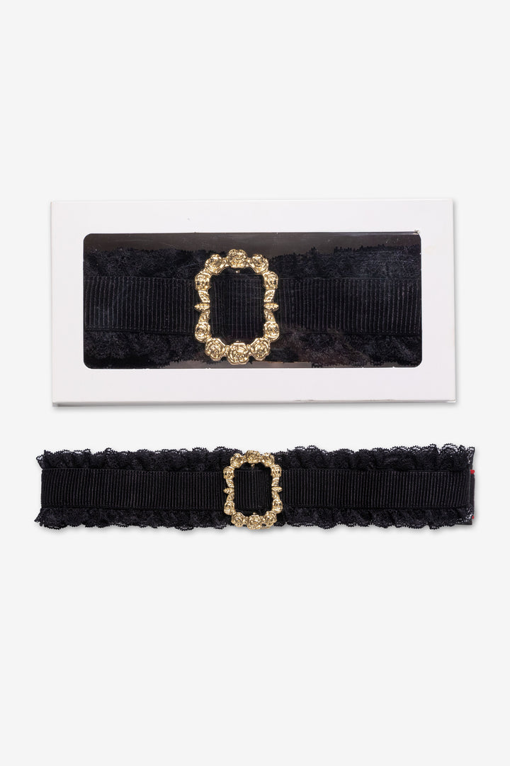 Széles gumis öv, amely fém övcsattal záródik. Szélein csipke kellék, elején díszes fém kellék, a csat mellett piros színű, SUGARBIRD feliratú címke díszíti. A termék stílusosan kialakított, díszdobozos csomagolásban érkezik, mely nemcsak esztétikus, hanem ízléses is.