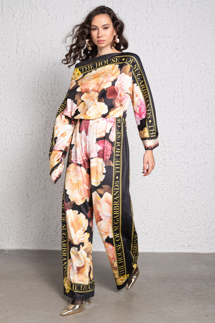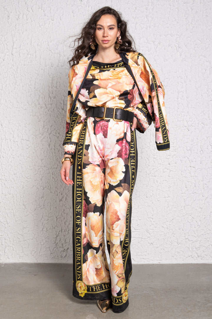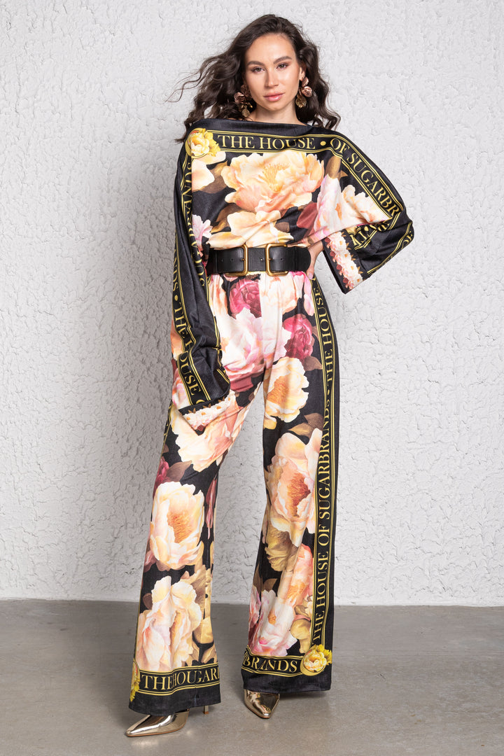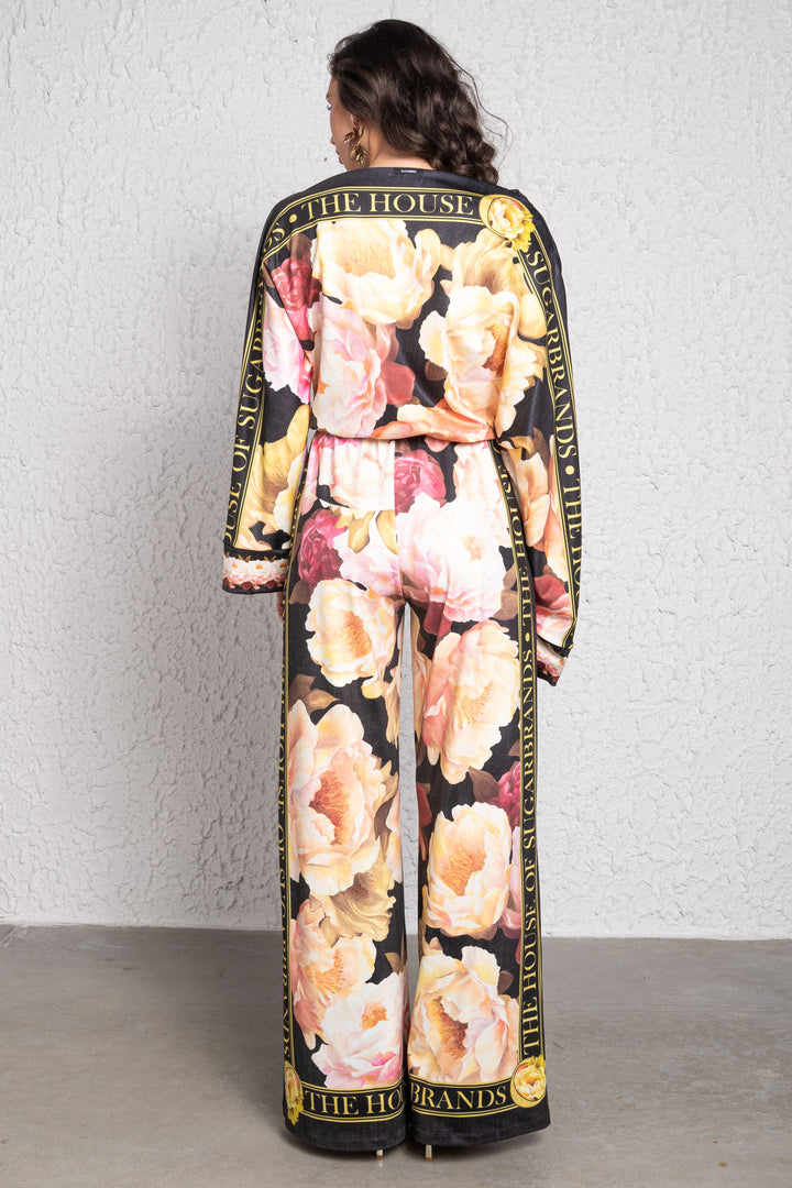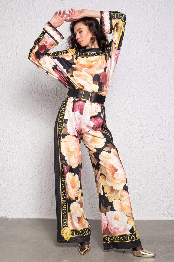 The romantic world of our collection is depicted in the painting “LA VIEN EN ROSE” flowers painted on a black background with watercolor technique and gold “THE HOUSE OF SUGARBRANDS” printed patterns make it elegant and special.