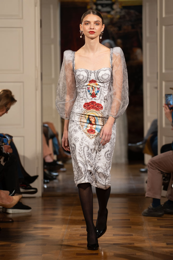 Discover the special pieces of our new Vive Maria collection, which feature the painted portrait of the Virgin Mary and its motifs as printed patterns.