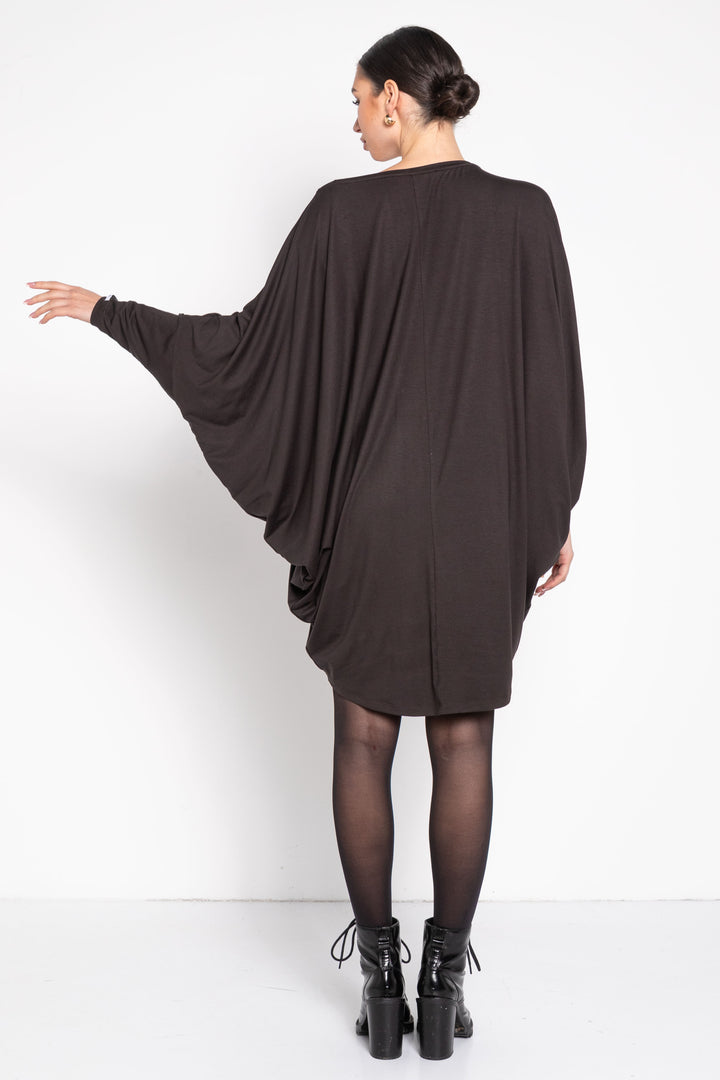 Combközépig érő, hosszú ujjú, bő fazonú tunika. Széles kivágású nyaka keskeny pánttal szegett. Ujján SUGARBIRD feliratú címkével díszítettük.