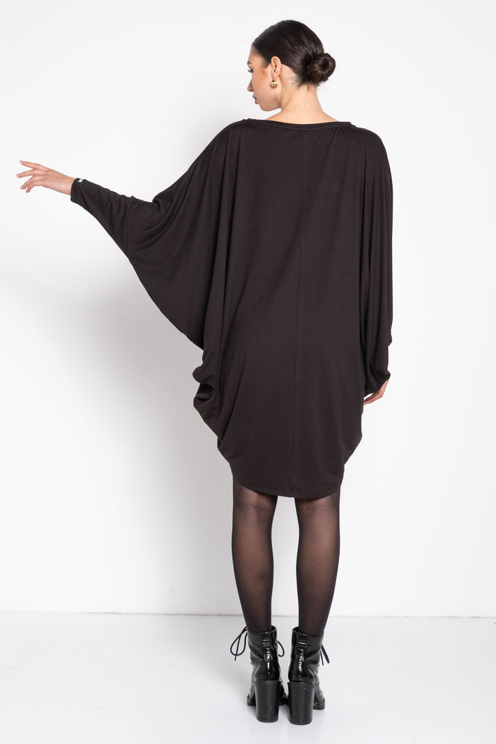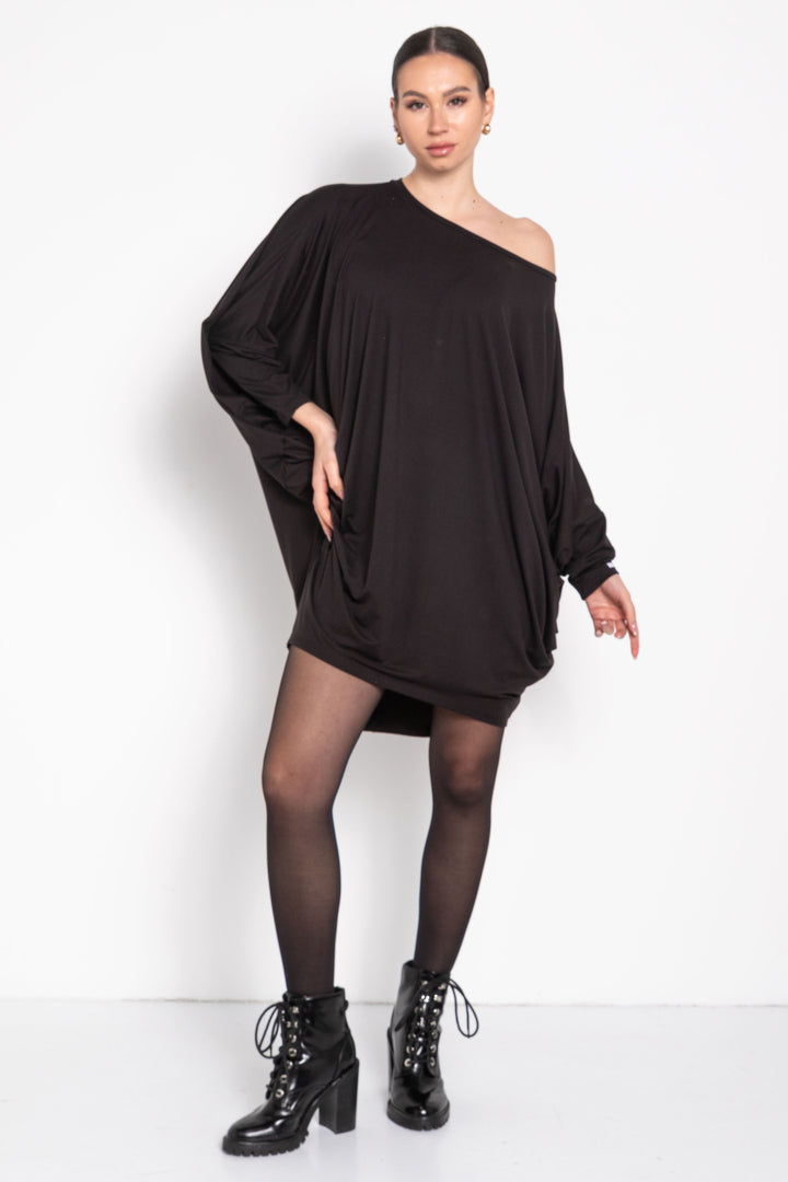 Combközépig érő, hosszú ujjú, bő fazonú tunika. Széles kivágású nyaka keskeny pánttal szegett. Ujján SUGARBIRD feliratú címkével díszítettük.