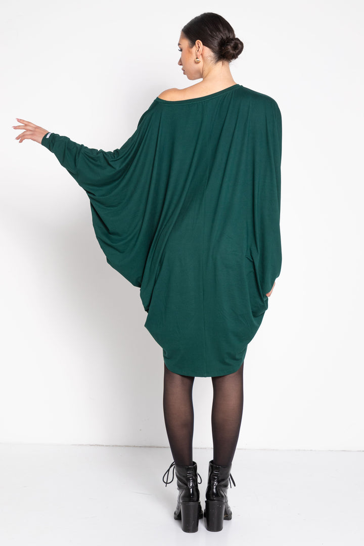 Combközépig érő, hosszú ujjú, bő fazonú tunika. Széles kivágású nyaka keskeny pánttal szegett. Ujján SUGARBIRD feliratú címkével díszítettük.