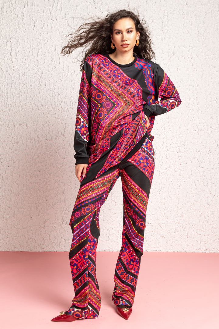Fedezd fel új Csángó kollekciónk különleges darabjait, melyeken fekete alapon a tájegységre jellemző szőttes mintázat printjei jelennek meg. Kollekciónk modern köntösbe helyezi a hagyományos erdélyi népviselet színeit és dizájnját.