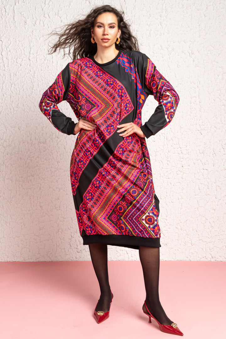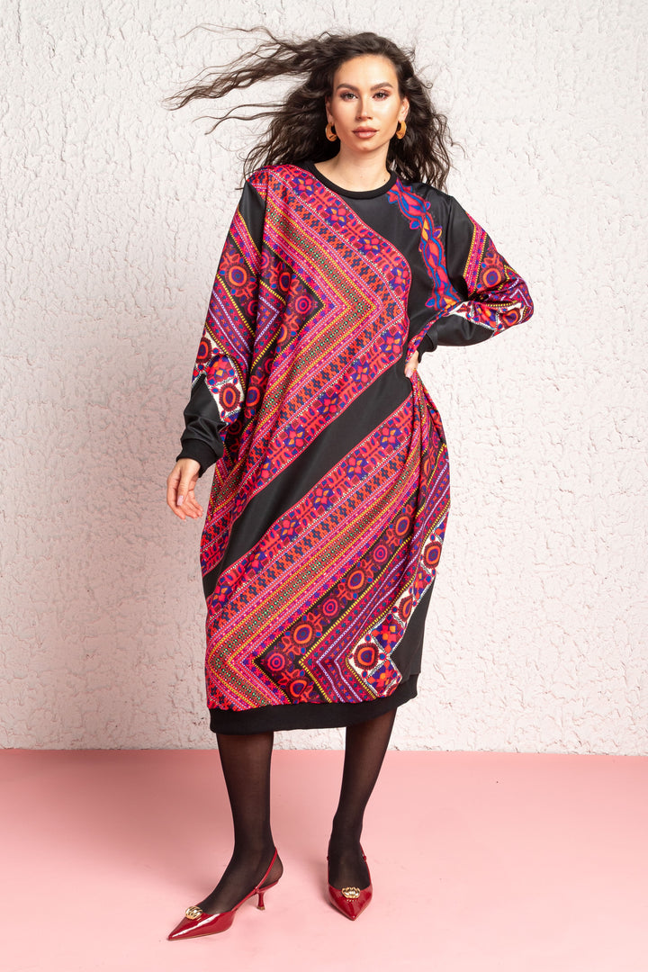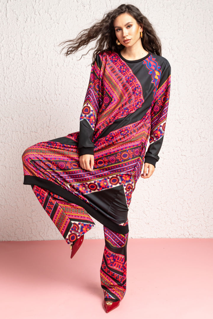 Fedezd fel új Csángó kollekciónk különleges darabjait, melyeken fekete alapon a tájegységre jellemző szőttes mintázat printjei jelennek meg. Kollekciónk modern köntösbe helyezi a hagyományos erdélyi népviselet színeit és dizájnját.
