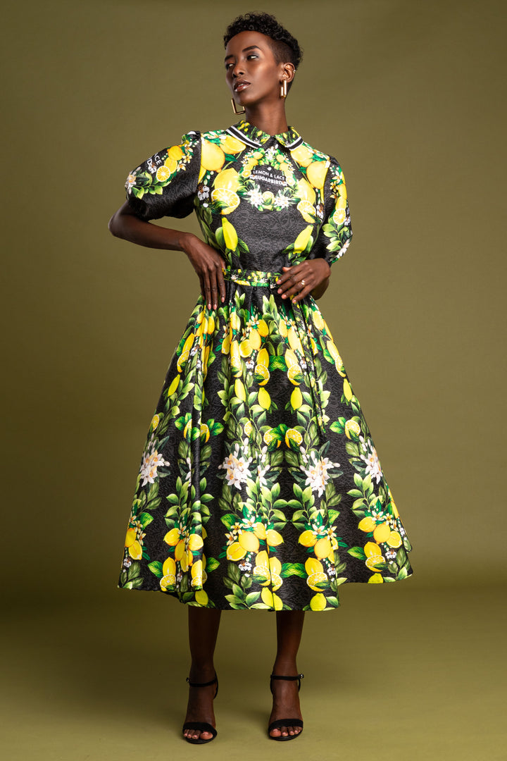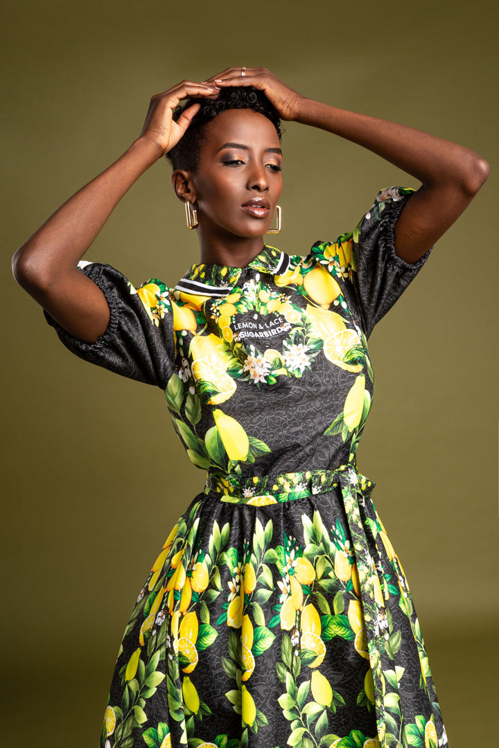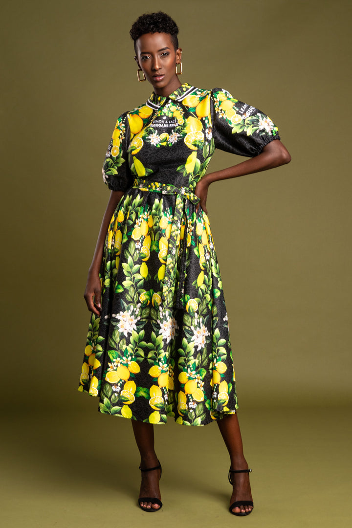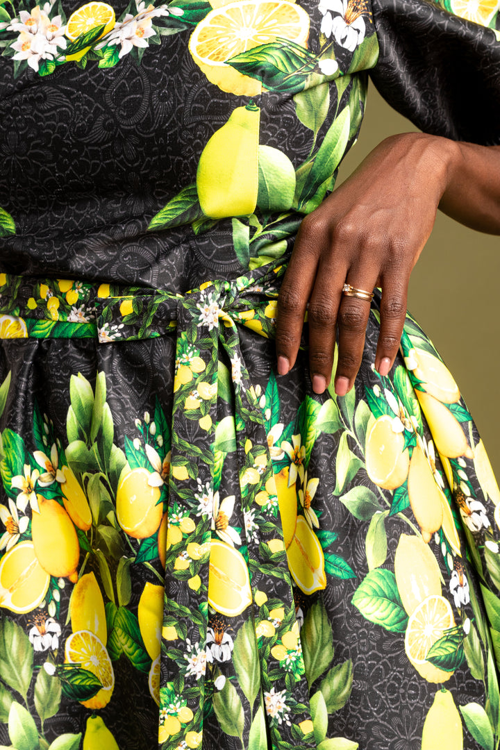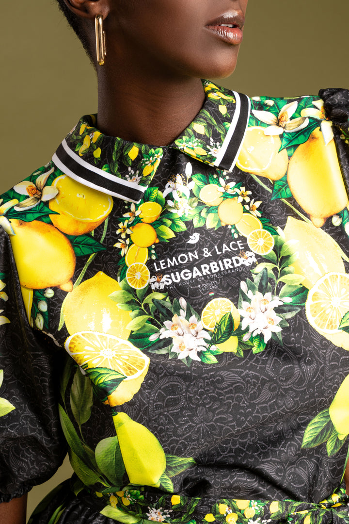 Frissítsd fel ruhatárad legújabb kollekciónkkal. Szerezd be kedvenc fazonod, melynek mintáját fekete csipke alapon citromok, levelek és virágaik printelt grafikái díszítik.