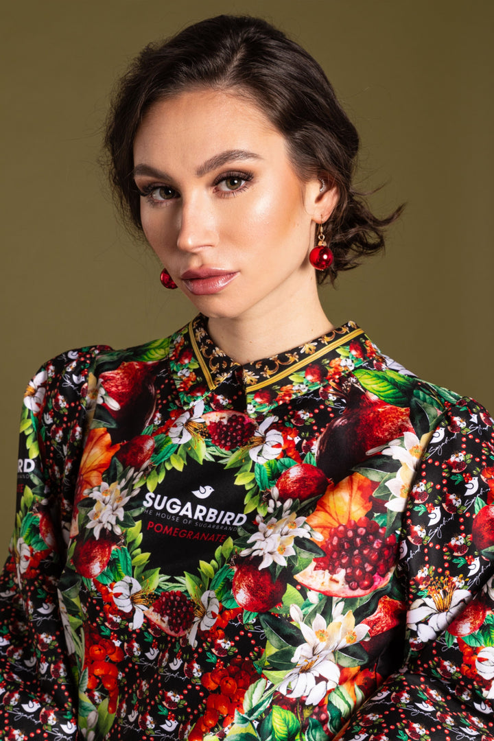 Válassz magadnak kedvelt fazonjainkból, melyeket most fekete alapra printelt gránátalma, virág és levél motívumok teszik különlegessé.