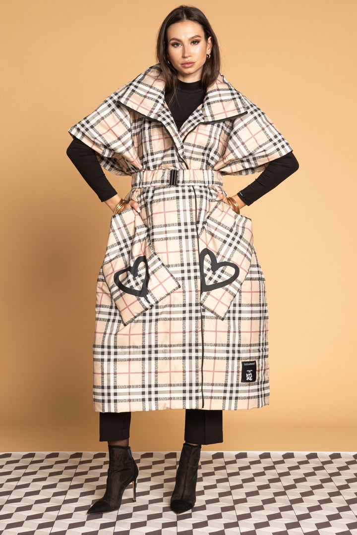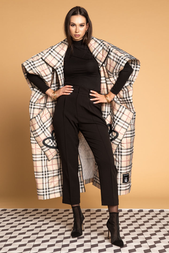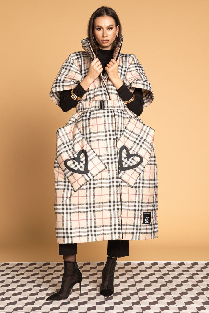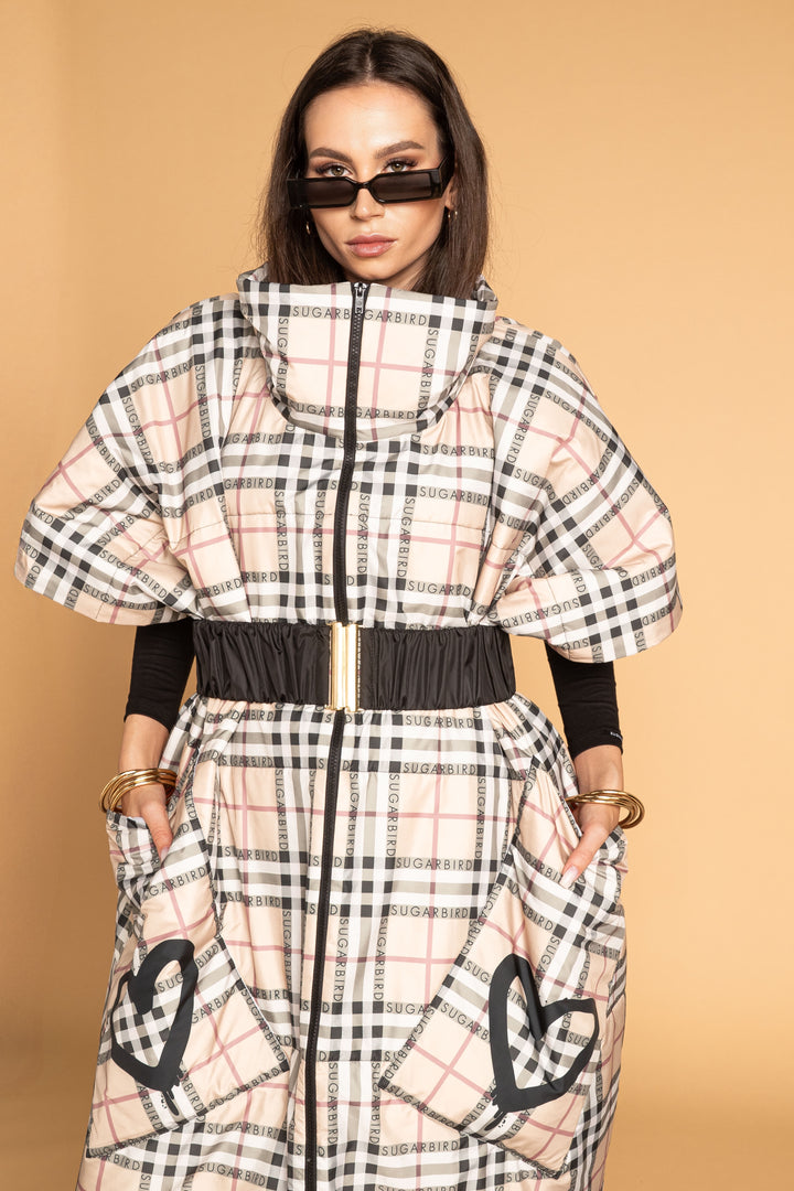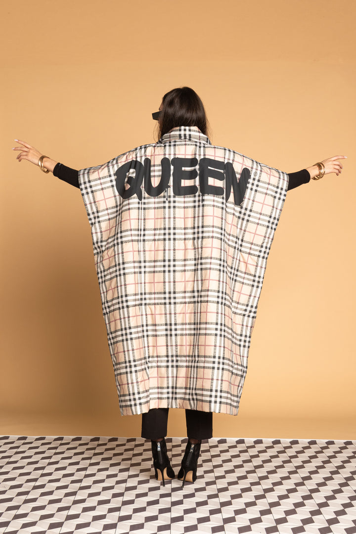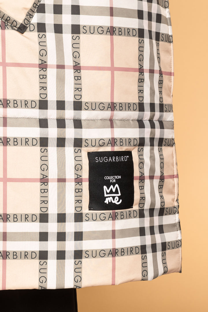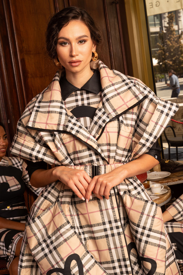 Fedezd fel az új LONDON QUEEN kollekciónk darabjait, melyet a bézs kockás minta időtlen eleganciája és az ikonikus QUEEN és SUGARBIRD feliratok kombinációja jellemez.