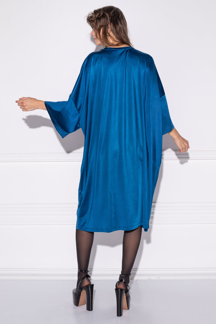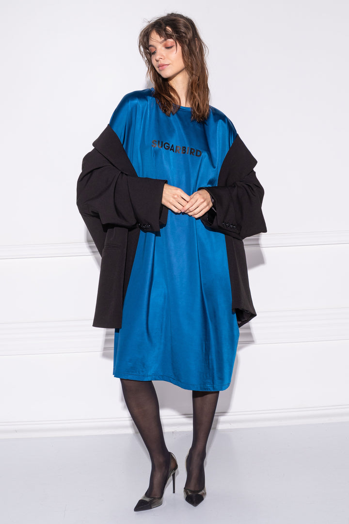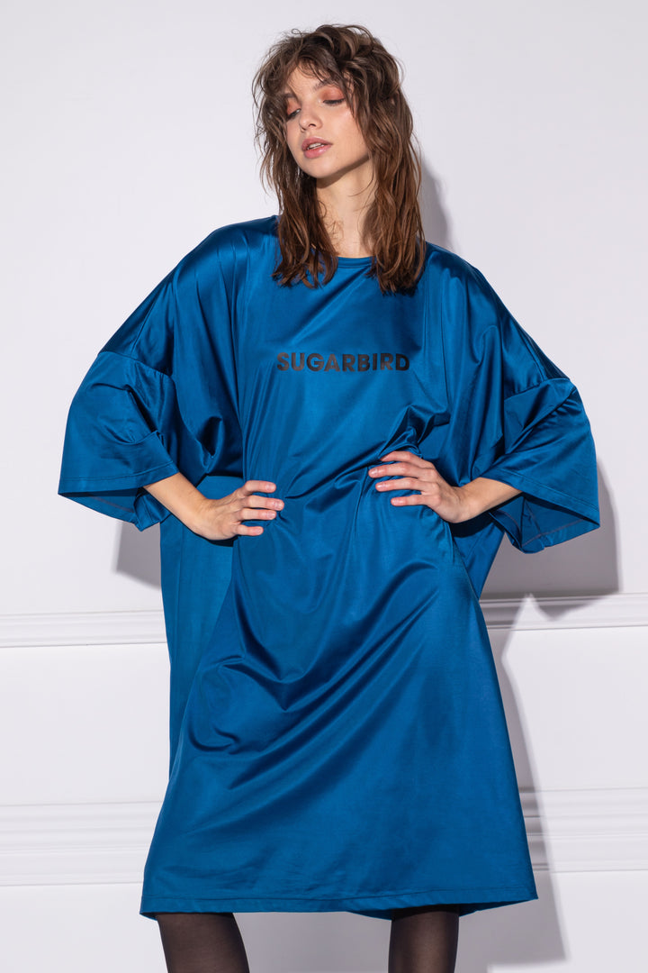 Rövid ujjú, bő, egyenes fazonú, combközépig érő tunika. Nyaka zárt és kerek, mely keskeny félbe hajtott pánttal szegett. Kedvenc és kényelmes alapdarab, melyet SUGARBIRD feliratú printtel díszítettünk.