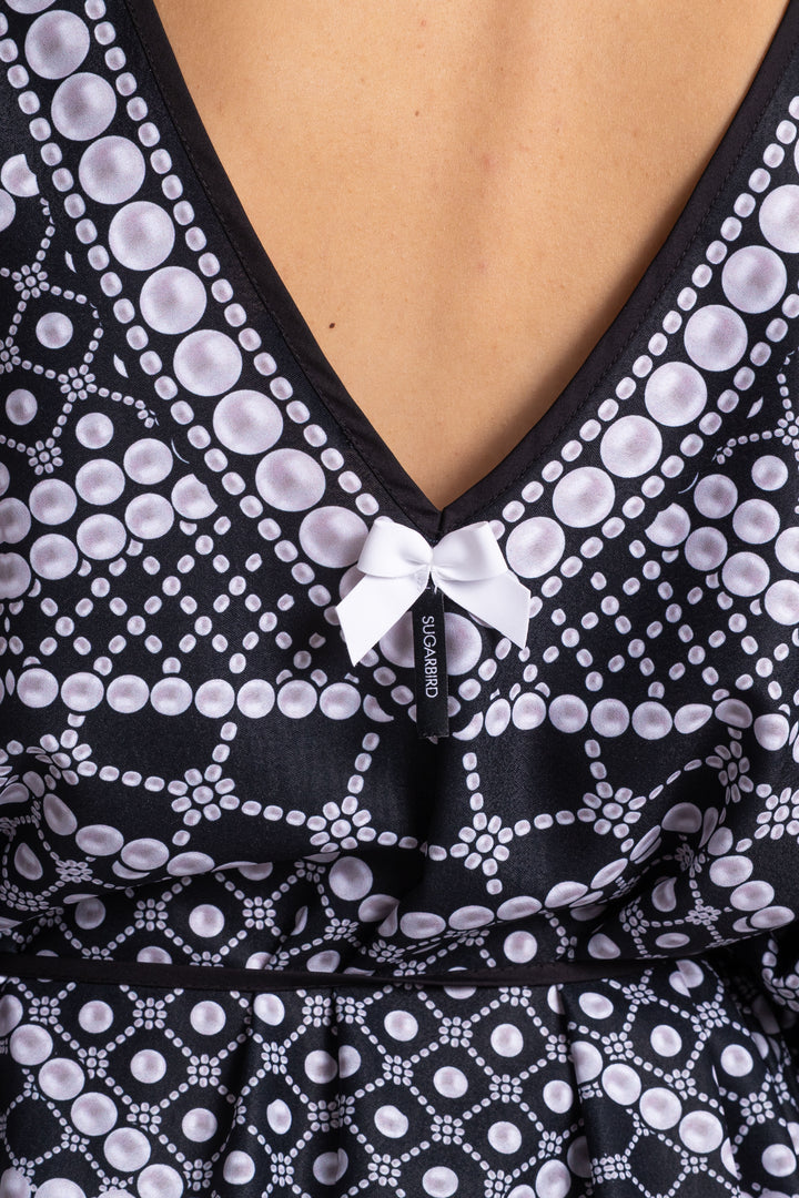 Engedd, hogy elvarázsoljanak az ünnepi gyöngyök és az ünnepi csillogás egy limitált kollekciónk keretében, melynek mintáját fekete alapon, gyöngy motívumokkal printelt minták díszítik.