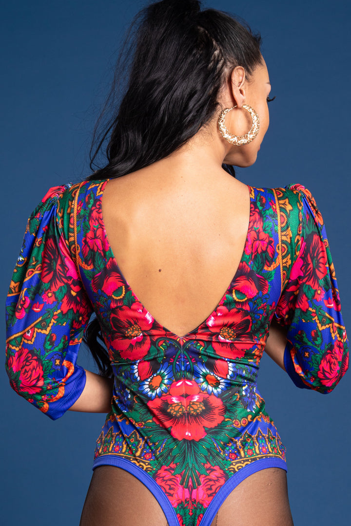 Háromnegyedes és puffos ujjú, alak követő body. Nyaka az elején ívesen, hátán mélyen „V” alakban kivágott. Alján gumizott combrésszel és állítható patentos kapoccsal záródik. Eleje a hátának is hordható kedv szerint. Ujjára SUGARBIRD feliratú címkét varrtunk.