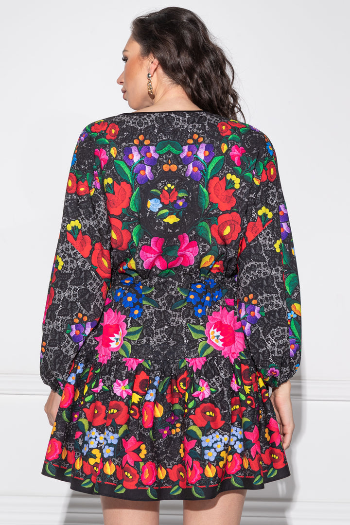 Engedd, hogy elvarázsoljon kedvelt, KALOCSAI RICHELIEU kollekciónk, melynek mintáját fekete csipke és színes, hímzett virág motívumok printjei díszítik.