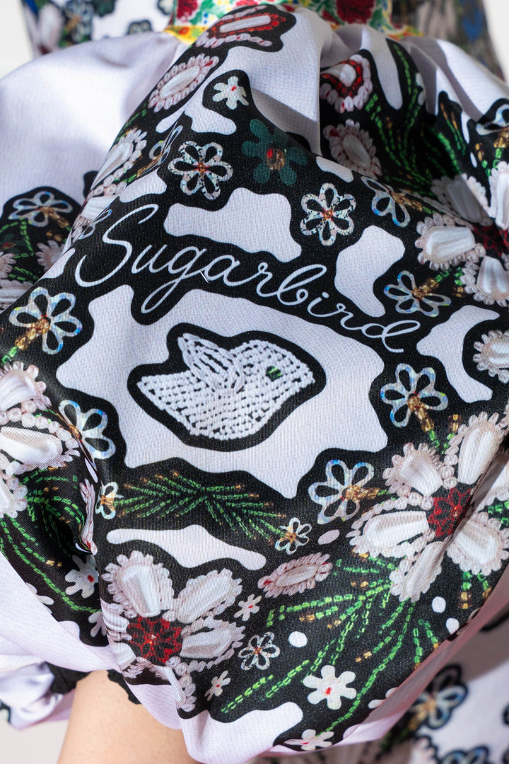 Hosszú ujjú, alak követő, térd fölötti hosszúságú ruha. Nyaka garbóval szegett, ujja alsó részén húzott, puffos ujj díszíti. A fazont SUGARBIRD feliratú címkével díszítettük.