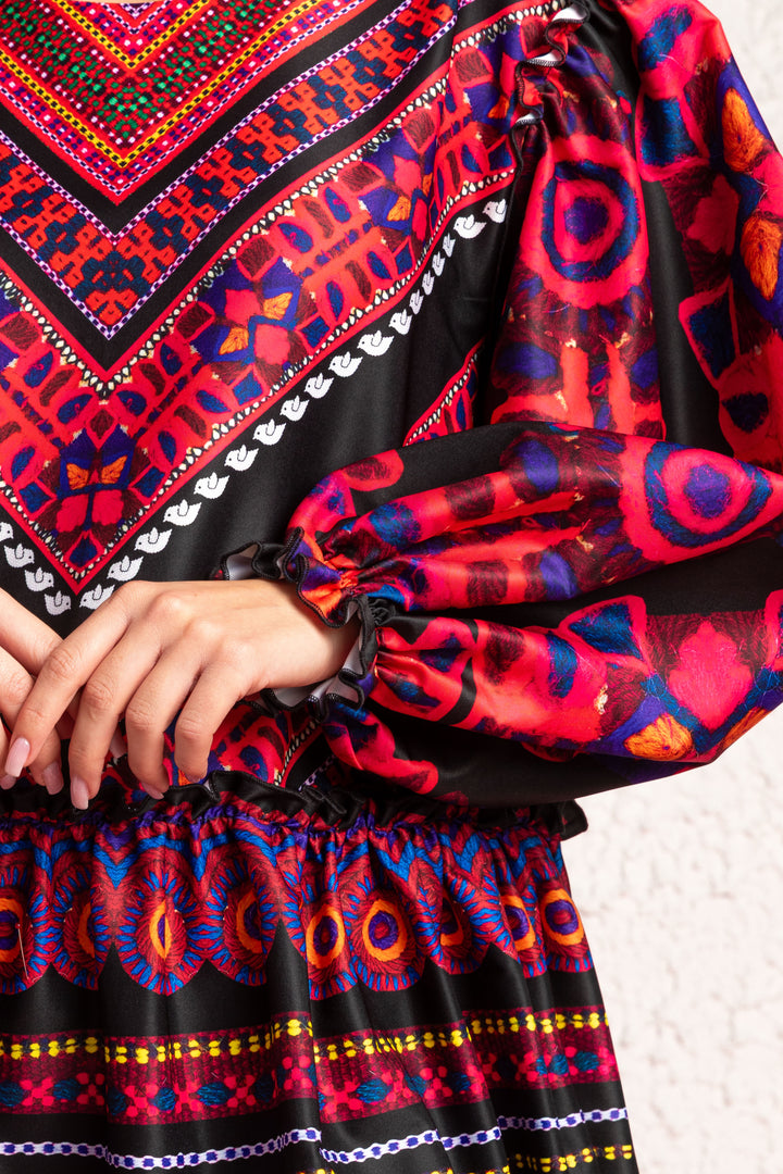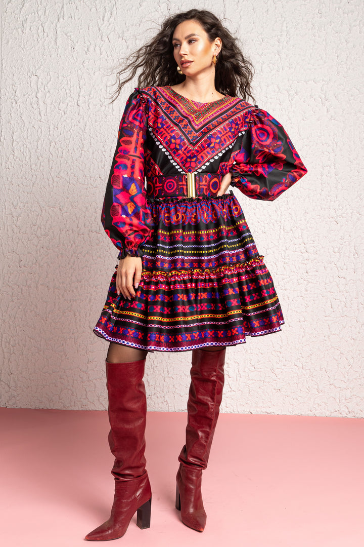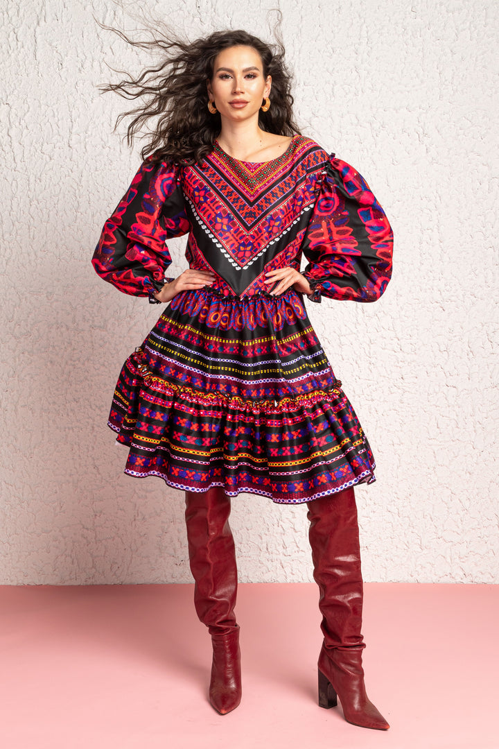 Fedezd fel új Csángó kollekciónk különleges darabjait, melyeken fekete alapon a tájegységre jellemző szőttes mintázat printjei jelennek meg. Kollekciónk modern köntösbe helyezi a hagyományos erdélyi népviselet színeit és dizájnját.