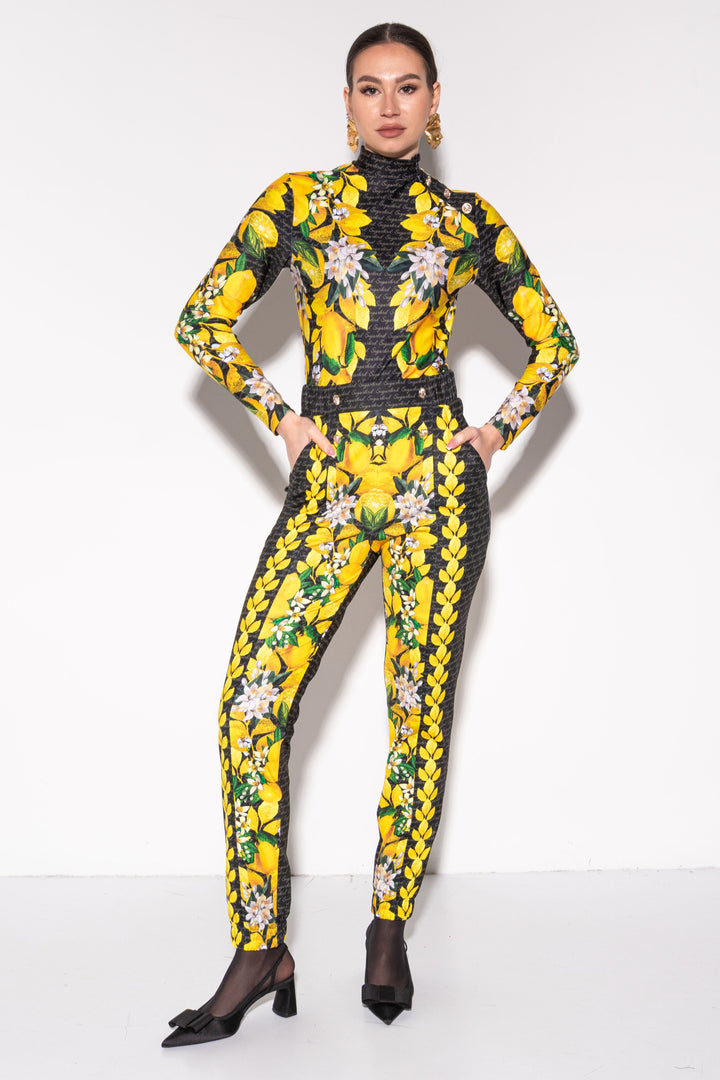 Frissítsd fel ruhatárad legújabb kollekciónkkal. Szerezd be kedvenc fazonod, melynek mintáját sötét alapon SUGARBIRD feliratok, valamint citromok, levelek és virágaik printelt grafikái díszítik.