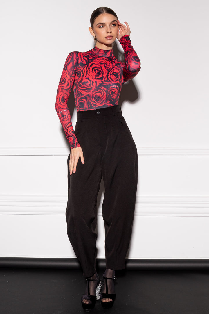 Válogass elegáns fazonjainkból, melyeket fekete és pöttyös alapra printelt rózsa és levél motívumok teszik különlegessé.