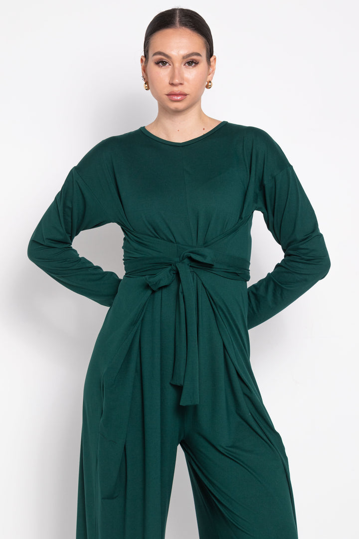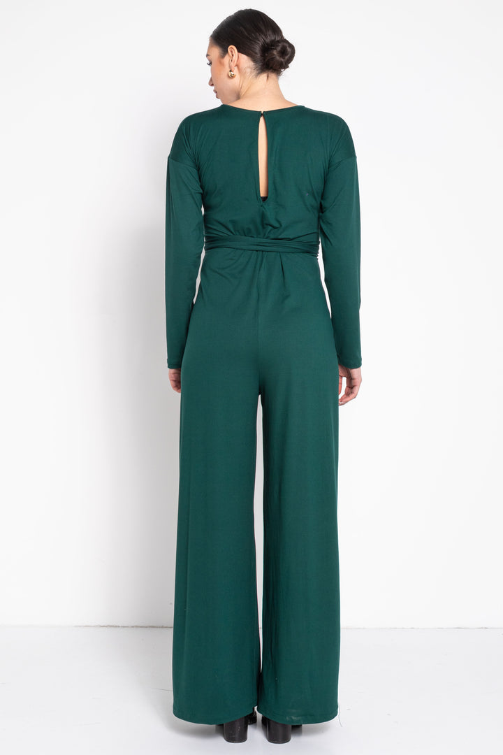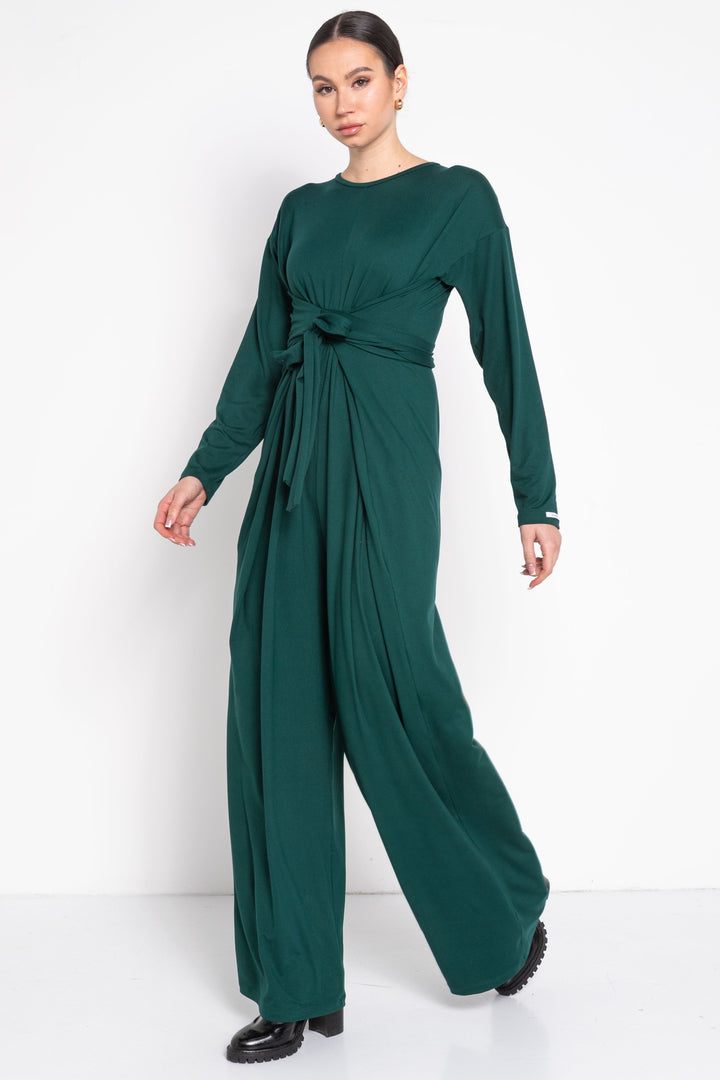Hosszú és bő szárú, hosszú ujjú, lazafazonú overál. Zárt nyakkivágása keskeny pánttal szegett a hátán egy hasíték felett gombbal záródik. Oldalába rögzített hosszú kötőjével a derékon többször átfűzhető. Ujján SUGARBIRD feliratú címkével díszítettük.
