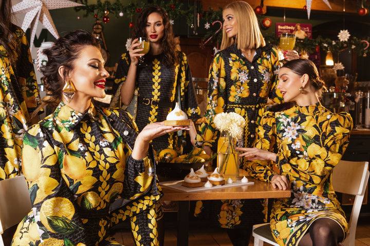 Frissítsd fel ruhatárad legújabb kollekciónkkal. Szerezd be kedvenc fazonod, melynek mintáját sötét alapon SUGARBIRD feliratok, valamint citromok, levelek és virágaik printelt grafikái díszítik.