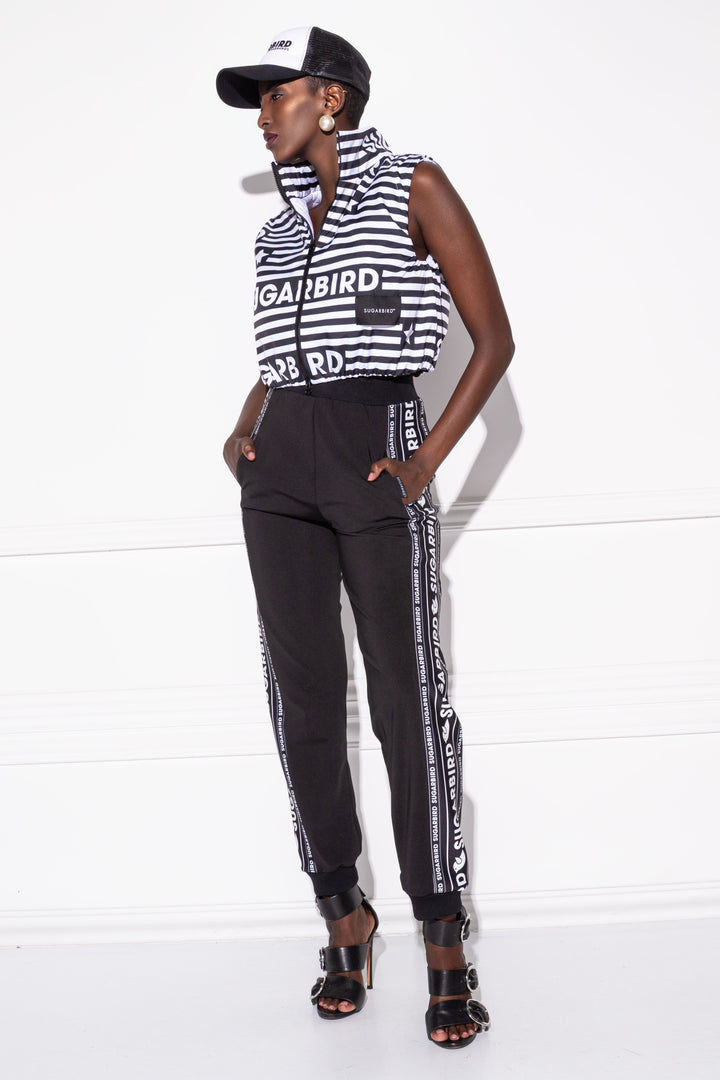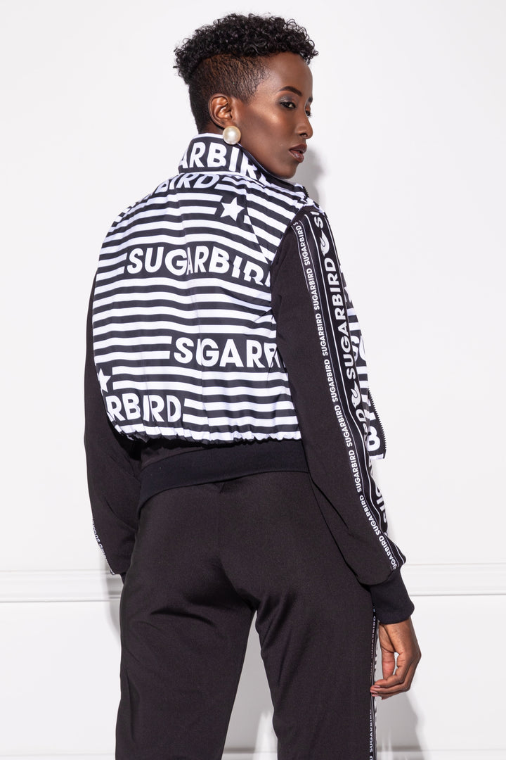 Kedvelt fazonunkat fekete és fehér SUGARBIRD feliratok Sugi madarak printelt mintája díszíti.