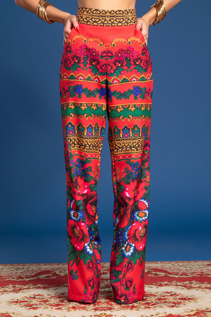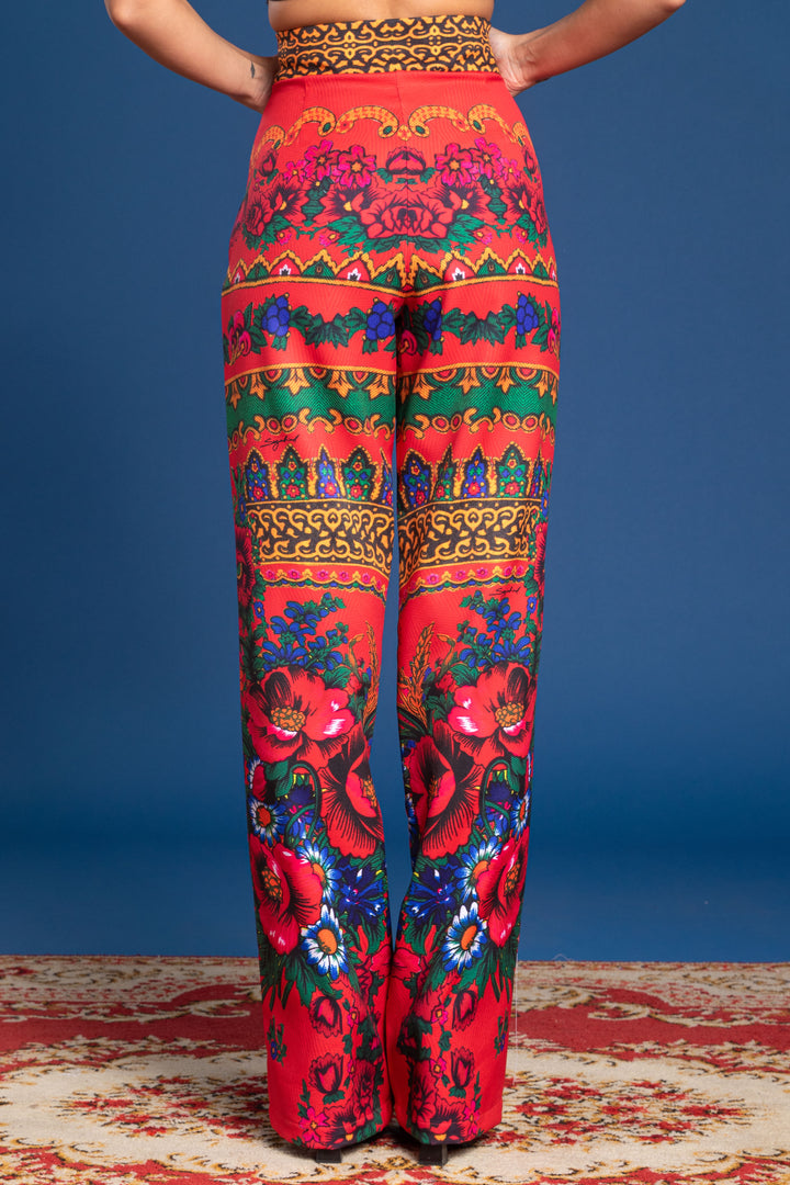 Hosszú és egyenes szárú, magas derekú, svédzsebes nadrág. Bal oldalán zipzárral nyitható, zsebénél SUGARBIRD feliratú címke díszíti.
