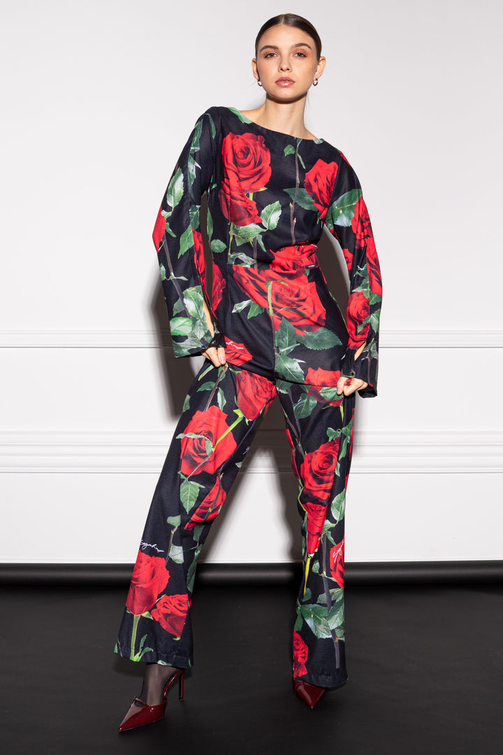 Válogass elegáns fazonjainkból, melyeket fekete és pöttyös alapra printelt rózsa és levél motívumok teszik különlegessé.