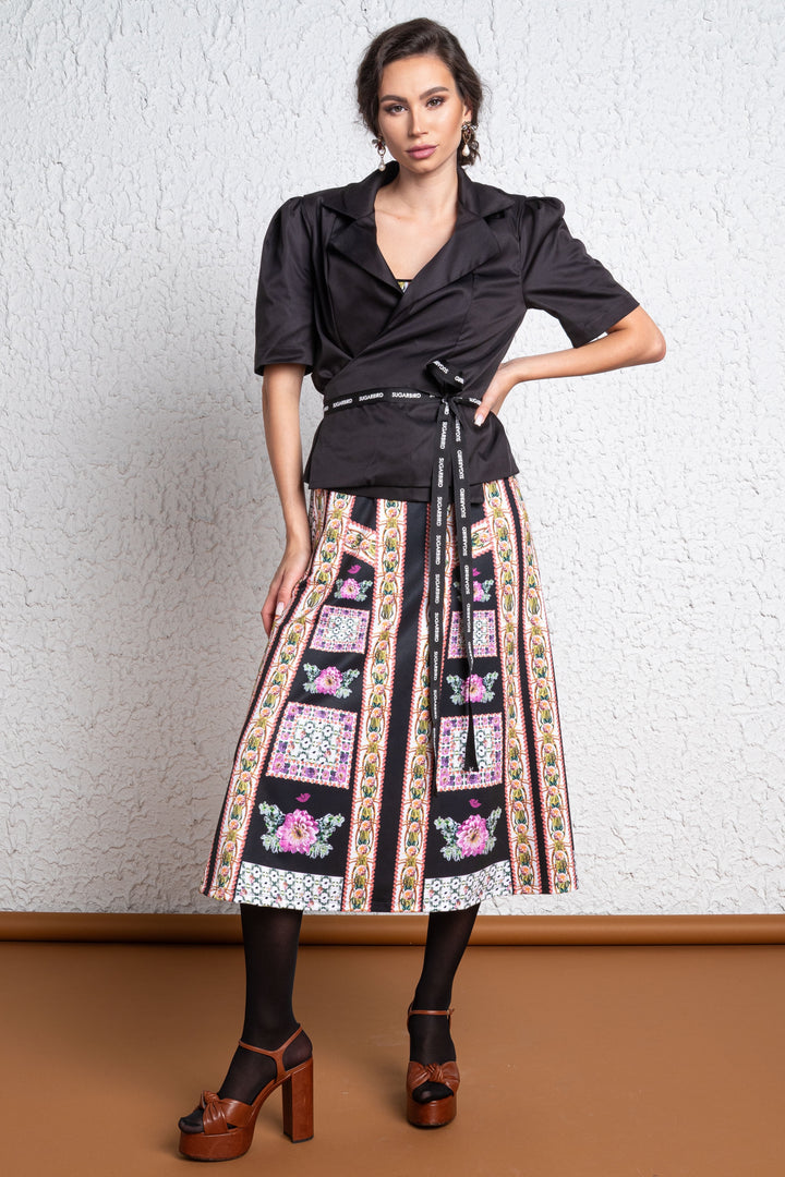 Fedezd fel virágokkal borított FLORI kollekciónk romantikus világát! Fazonjainkat fekete alapon kerti virágok printelt mintája díszíti.