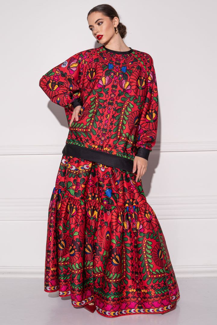 Válassz magadnak izgalmas fazonjainkból, aminek összhatását narancs színű alapra printelt MATYÓ virág és levél motívumok teszik különlegessé.